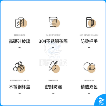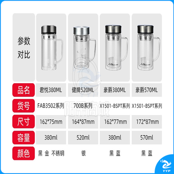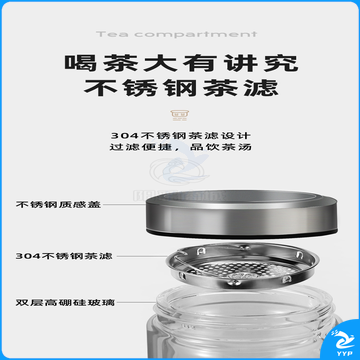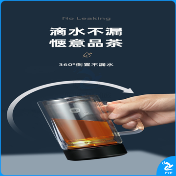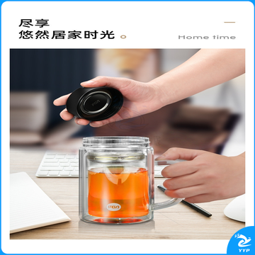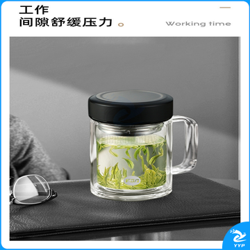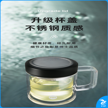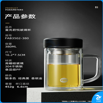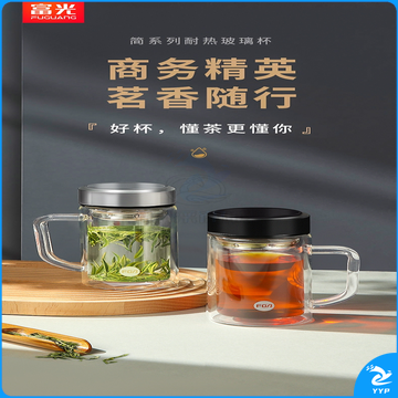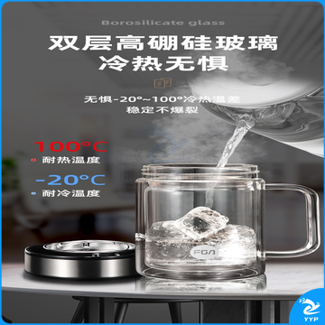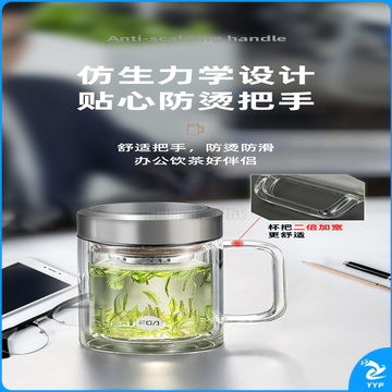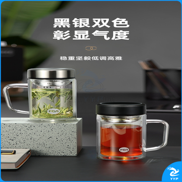 富光 双层带把手带盖男女士商务办公室泡茶杯耐热防爆 (流光银520ML)
