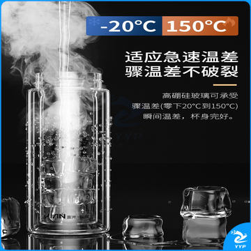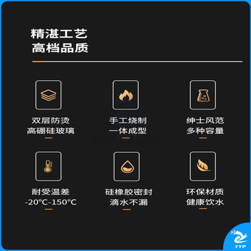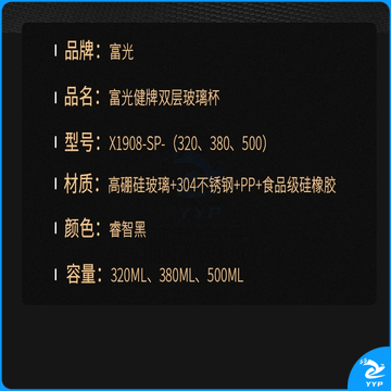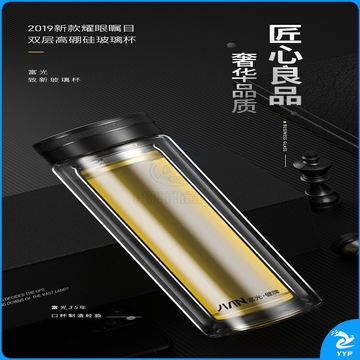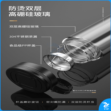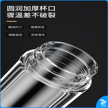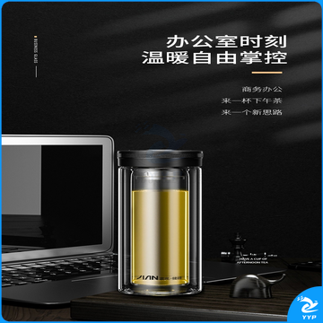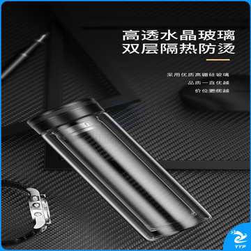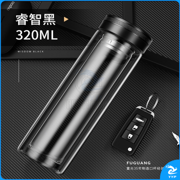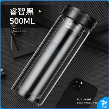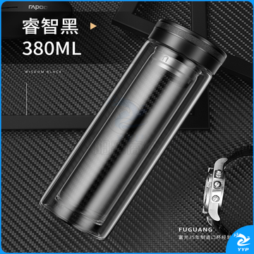 富光 玻璃杯双层大容量男女车载便携健牌过滤耐高温泡茶杯 黑色 (380ML)
