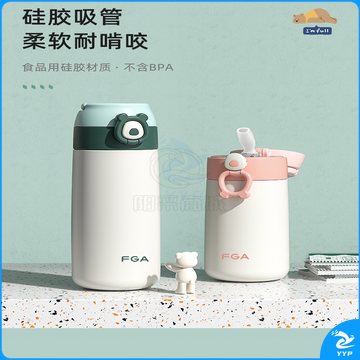 富光 女生高颜值316L不锈钢带吸管保温杯 (京都粉500ML)