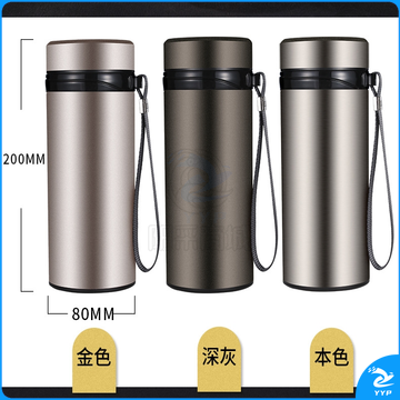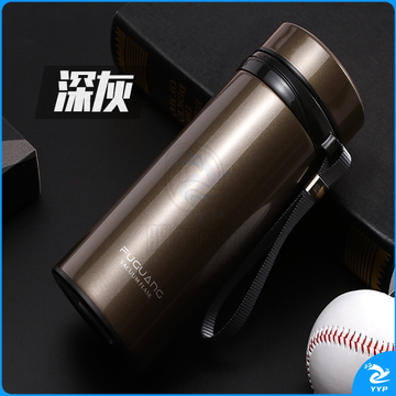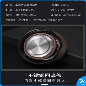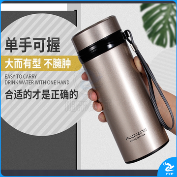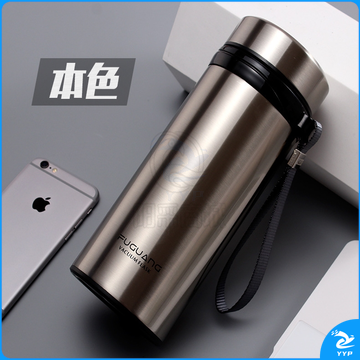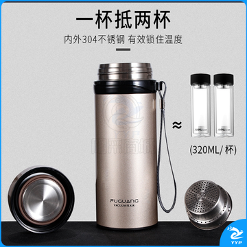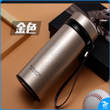 富光 大容量不锈钢 男女大号过滤真空杯带盖防漏680ML直身杯 (金色)