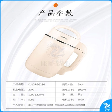 九阳(Joyoung)豆浆机 1.2L免滤双层杯体家用多功能搅拌 DJ12R-D62SG