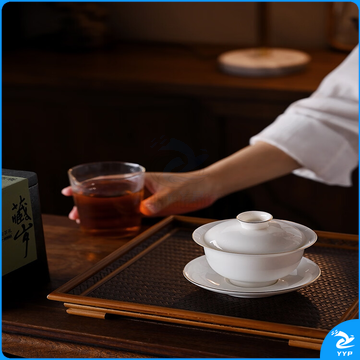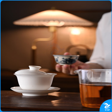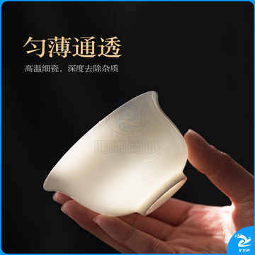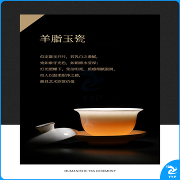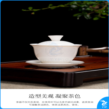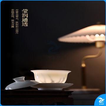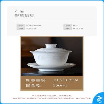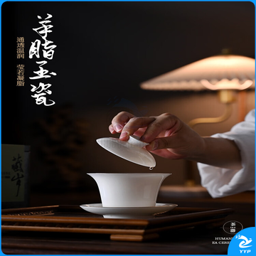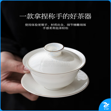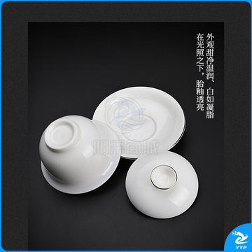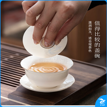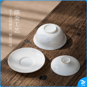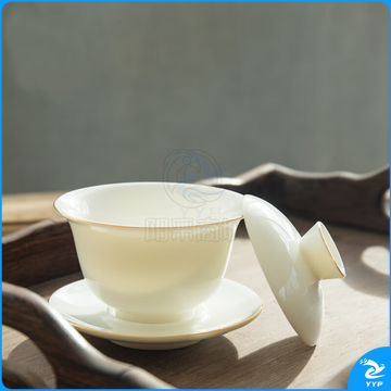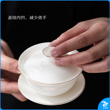 豪峰 羊脂玉单品羊脂玉描金盖碗简装