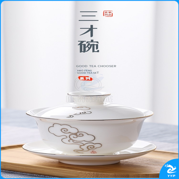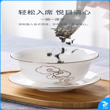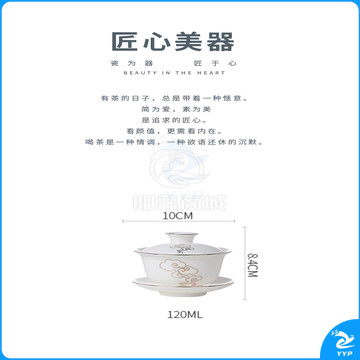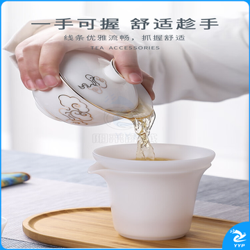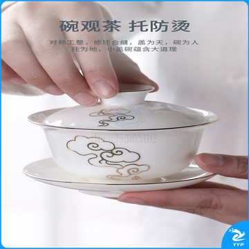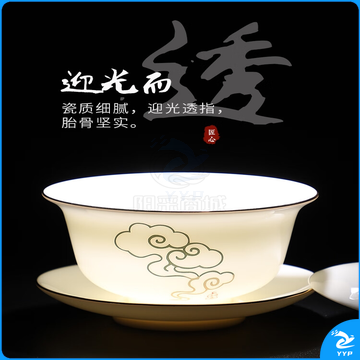 豪峰 羊脂玉单品羊脂玉祥云盖碗简装