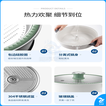 摩飞电器(Morphyrichards) 升降电火锅专用多功能锅家用电煮锅一体锅MR9090 升降锅鸳鸯盘MR1071