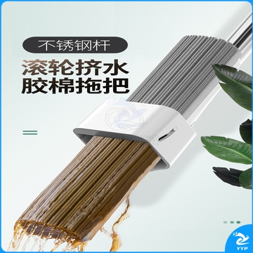 兰诗(LAUTEE)FH-1360 新款不锈钢免手洗胶棉拖把吸水挤水海绵一拖干湿两用地拖拖布 新款胶棉 33CM