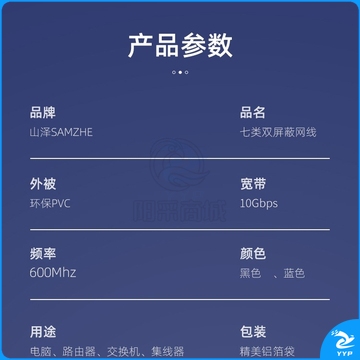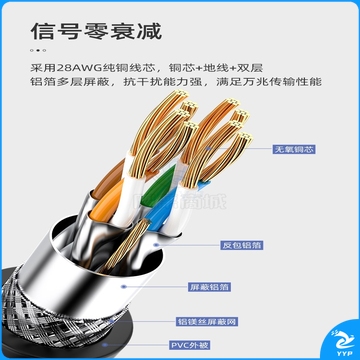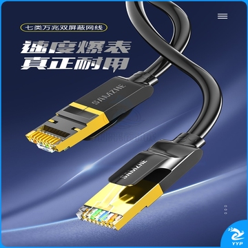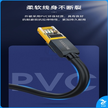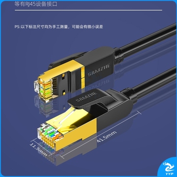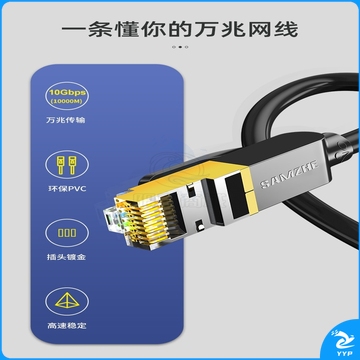 山泽(SAMZHE)七类网线 八芯双绞纯铜镀金双屏蔽 黑色8米CAT-708H