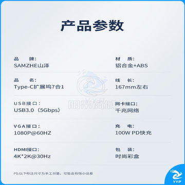 山泽(SAMZHE)Type-C扩展坞 七合一拓展坞 DK-S07