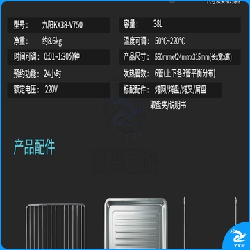 九阳(Joyoung )电烤箱 家用多功能电烤箱烘焙蛋糕38L独立控温 KX38-V750 黑色