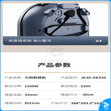 九阳(Joyoung)电饼铛 加深可拆洗煎烙饼机双面独立加热多功能不粘烤盘 JK30-GK530 夜曲蓝