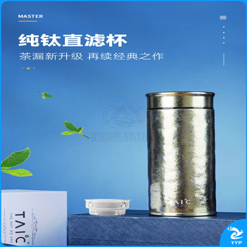 TAIC钛度 纯钛直身保温杯(带滤网)TZLB-T480皓月银 480ml