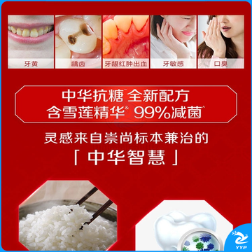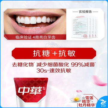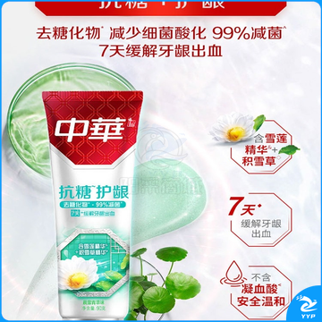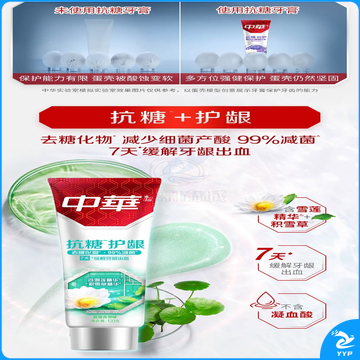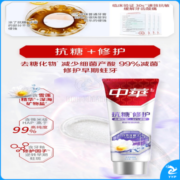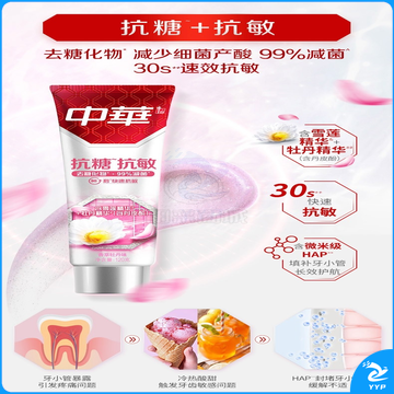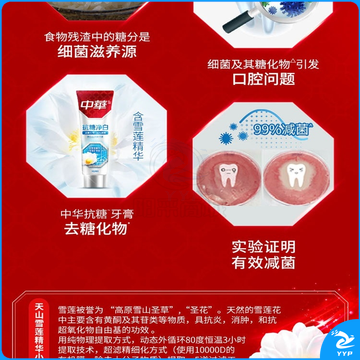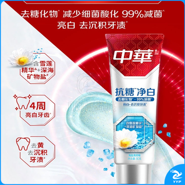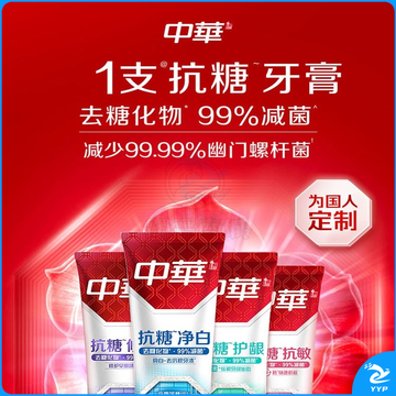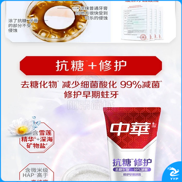 中华抗糖牙膏 护龈护齿修护牙釉质 家庭装 抗糖净白海盐薄荷味90g