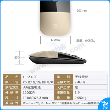 惠普 HP 无线鼠标 Z3700 (白色) (V0L80AA)