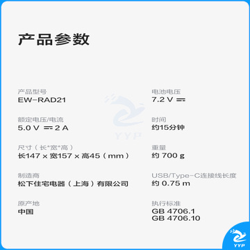 松下Panasonic 筋膜枪EW-RAD21 (灰色-H492) (粉色-P492) (白色-W492)