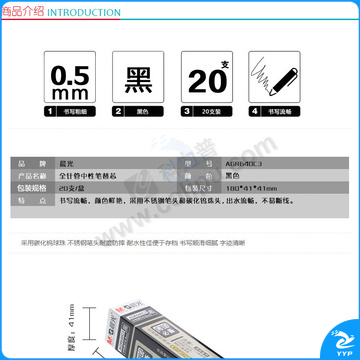 晨光 M&G 考试万岁中性替芯 AGR640C3 0.5mm (黑色) 20支/盒 (适用于KGP1821A、GP1390型号中性笔)