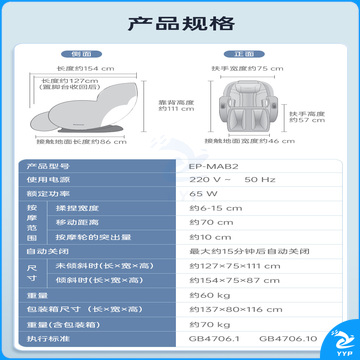 松下Panasonic 按摩椅 EP-MAB2 (米色-H492) (蓝色-A492) (绿色-G492)