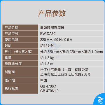 松下Panasonic 肩颈按摩器 EW-DA60 (亚麻灰-H492) (粉色-P492) (绿色-G492)