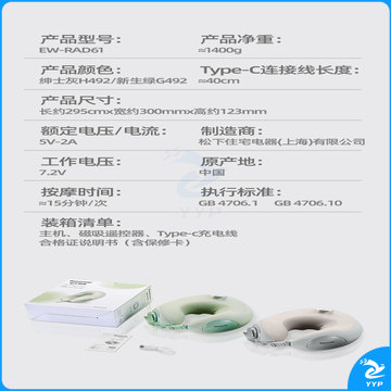 松下Panasonic U型枕 EW-RAD61 (灰色-H492) (绿色-G492)