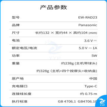 松下Panasonic 筋膜枪 EW-RAD23 (经典白-W492) (丁香紫-V492) (浅蓝绿-G492)