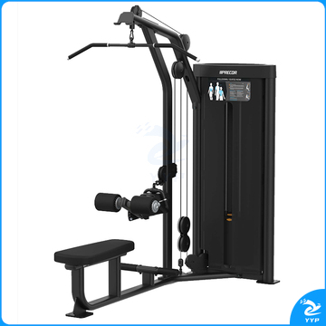 4、高位下拉/坐姿划船训练器:双功能器械,提供背阔肌下拉和中排练习姿势,该器械具有易于调节的大腿紧固垫,加长的座椅和脚踏杆,便于进行两种练习,用户只需推一下拉杆,便可轻松地引入附加重量,增加工作负荷;
