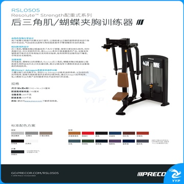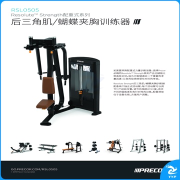 5、后三角肌/蝴蝶夹胸训练器配备两个独立式活动臂,每个活动臂可以调节13个起始位置,调节范围超过120度,适合不同的锻炼者和有针对性的训练,配重塔架位于设备右侧,方便用户调整;