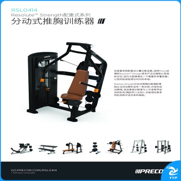 5、分动式推胸训练器配备独立式活动臂和设有一条自然、内收的运动路线,该设备既训练参与上半身推举运动的肌肉(胸肌和三头肌),又能调动更多的肌肉群并适合多种锻炼;