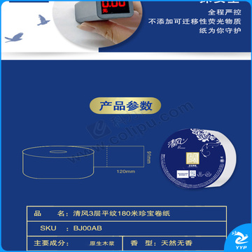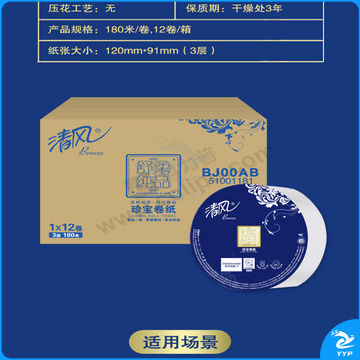 清风 舒柔纯品大卷纸 BJ00AB 三层 180m 12卷/箱