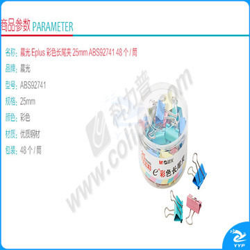 晨光 M&G 4号 Eplus彩色长尾夹 ABS92741 25mm 48个/筒