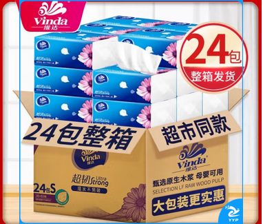 维达(Vinda)抽纸巾24包整箱批发实惠家庭装餐巾纸 卫生纸 维达抽纸24包(箱装)