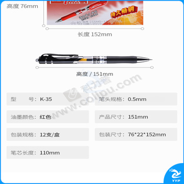 晨光 M&G 按动中性笔 K-35 0.5mm (红色) 12支/盒 (替芯 G-5)(大包装)