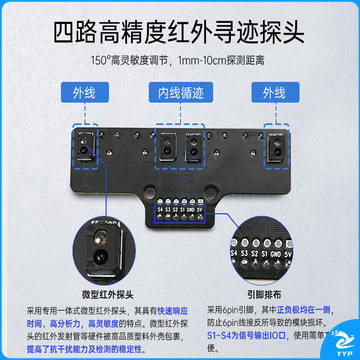幻尔4路巡线传感器+杜邦线 红外寻迹避障四路识别机器人智能小车循迹模块