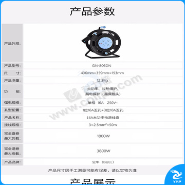 公牛 16A大功率电源线盘 GN-806DN 4位50米线粗2.5MM²