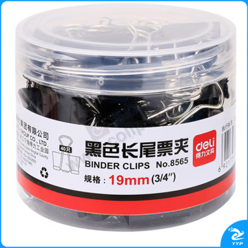 得力 筒装黑色长尾票夹 8565 19mm 黑色(40只/桶)