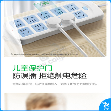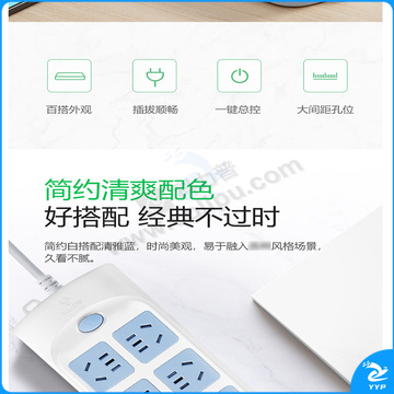 公牛 BULL 插线板 GN-605 总控10位五孔 5米 (蓝白) 超功率保护 10005589