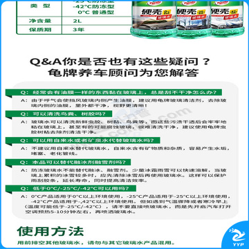 龟牌 非浓缩型无味 -25℃2L玻璃水 透明色 硬壳 -25℃ 2L