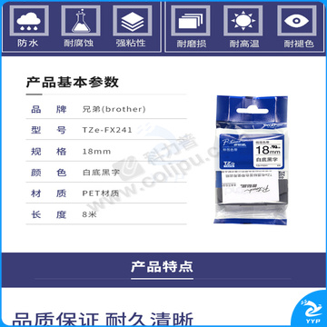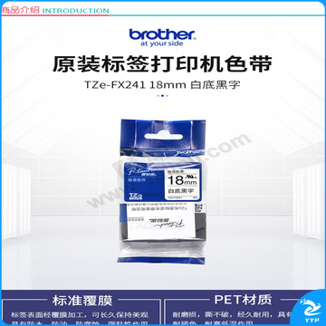 兄弟 brother 标签机色带 TZe-FX241 18mm (白底/黑字) (线缆标签)