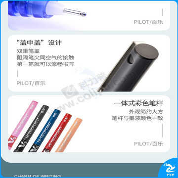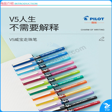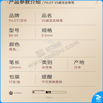 百乐 PILOT 拔帽式签字笔 BX-V5 0.5mm (黑色) 12支/盒