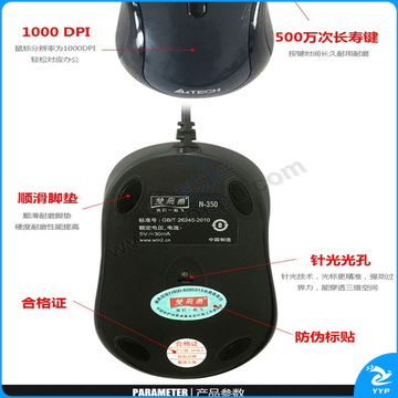 双飞燕 A4TECH 有线鼠标 N-350 (高亮铁灰) USB
