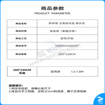伊伊爱 玉兔绒毛毯 TZ0TK02300157 200*230cm 面料:聚酯纤维 (青灰色)