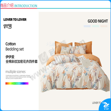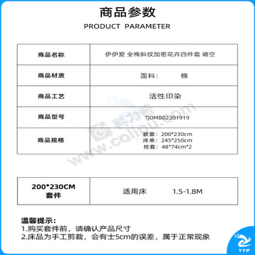 伊伊爱 全棉斜纹加密花卉四件套 TJ0MB02301919 200*230cm(被套:200*230cm 床单:245*250cm 枕套:48*74cm*2) (晴空) (全棉/盒)