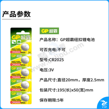 超霸 GP 纽扣锂电池 3V 5粒/卡 240卡/箱 CR2025 新老包装随机发货
