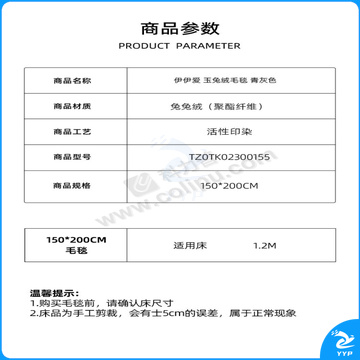 伊伊爱 玉兔绒毛毯 TZ0TK02300155 150*200cm 面料:聚酯纤维 (青灰色)