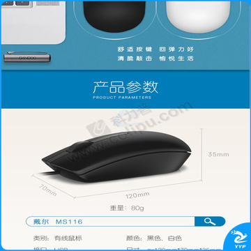 戴尔 DELL 有线鼠标 USB MS116 (黑色)