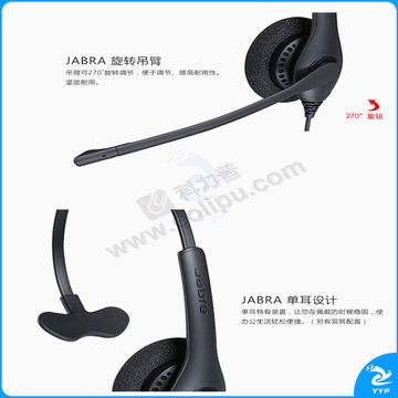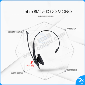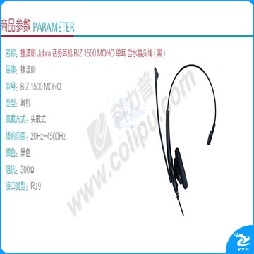 捷波朗 Jabra 话务耳机 BIZ 1500 MONO-RJ9 单耳 (黑色) 含水晶头线