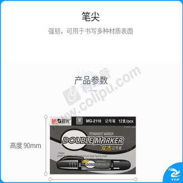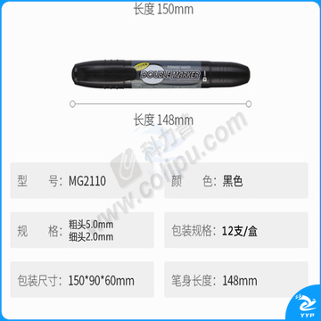 晨光 M&G 大双头记号笔 MG-2110 粗头5.0mm 细头2.0mm (黑色) 12支/盒