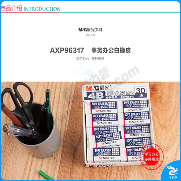 晨光 M&G 4B事务办公橡皮 AXP96317 65*24*12mm (白色) 30块/盒