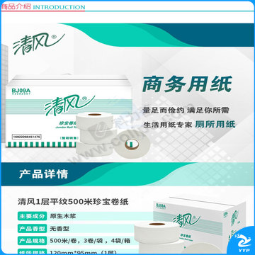 清风 Breeze 珍宝大卷纸 BJ09A 单层 500m 12卷/箱