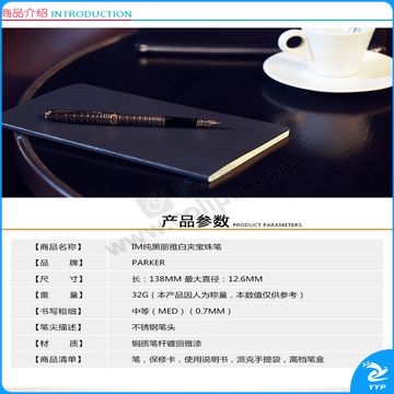 派克 PARKER IM纯黑丽雅白夹宝珠笔 IM系列 派克 IM系列 0.7mm