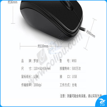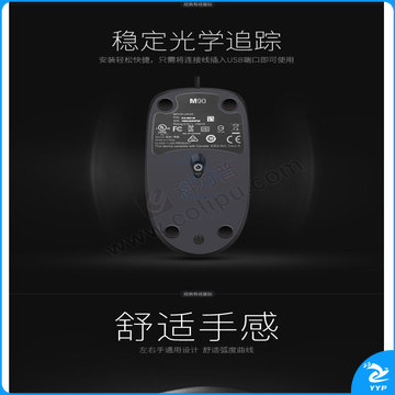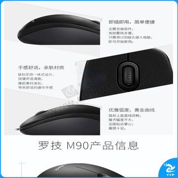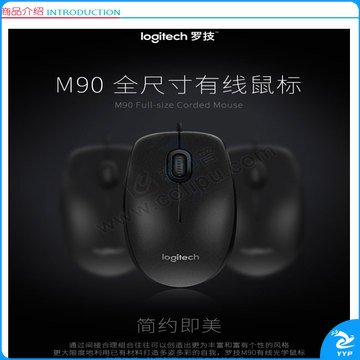 罗技 Logitech 有线鼠标 M90 有线+USB (黑色)