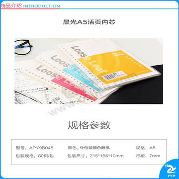 晨光 M&G 活页芯 APY9B045 A5 20孔 (红色、蓝色、绿色、灰色) 80页/本 30本/封 (颜色随机)