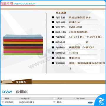前通 front 加厚 记事本 DV69-A501 A5 (蓝色) 152页/本 10本/封 (莱尼纹)